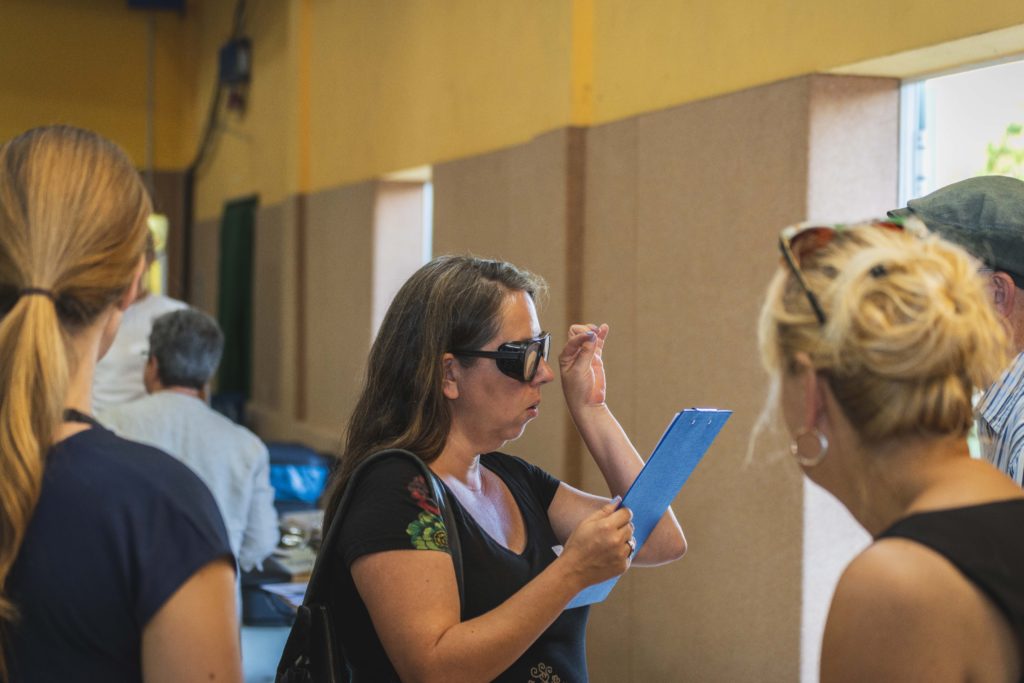 Für Peggy als Grafikerin, die von ihrer Sehkraft abhängt, grenzte die Auseinandersetzung mit Augenkrankheit und Blindheit an eine Mutprobe. Durch die Tests mit Brillen, die Augenkrankheiten simulieren, konnte sie sich weit besser rein finden. Diabetes 2 und Grauer Star führen dazu, dass die Welt nur noch verschwommen wahrgenommen werden kann. Das macht manche einfachen Dingen den Alltags, wie z. B. einen Vertrag unterschreiben oder Zitronenschneiden, nahezu unmöglich. Bei den Zitronen hilft das Gefühl in den Fingern und mehr Hell-Dunkel-Kontrast. Bei den Verträgen kann nur noch eine digitale Lösung helfen, damit Dinge überhaupt erfasst werden, bevor sie unterschrieben werden. Der härteste Test war aber das Erleben von Blindheit. In totaler Dunkelheit ohne Orientierung im Rahm zu stehen ist extrem beängstigend. Nur liebe Menschen um einen herum können helfen, das Umfeld zu erfassen. Ein Stock alleine hilft auch nicht, da es kaum möglich ist, zwischen einem angetippten Fuß oder einem Hindernis zu unterscheiden. Eine Stufe oder anderer Boden zeigt immerhin durch dem Blindenstock auf, dass sich die Situation ändert, aber nicht, wohin sie führt. Geräusche geben Orientierung, zu viele aber nehmen sie wiederum. Gerüche helfen auch, aber dann z. B. angebotenes Essen zu ertasten ist natürlich kaum möglich. Die Menschen im Umfeld reagieren zwar liebevoll helfend, aber schließen doch die Betroffenen irgendwie aus, wenn man eine Behinderung hat – obwohl man doch ganz normal kommunizieren könnte.